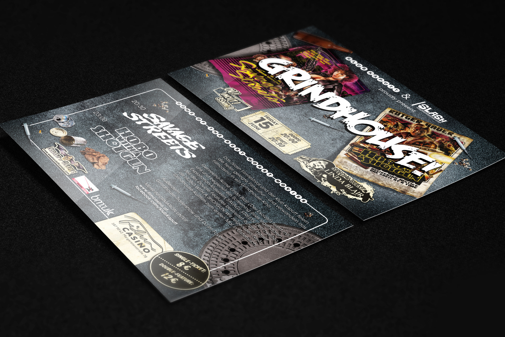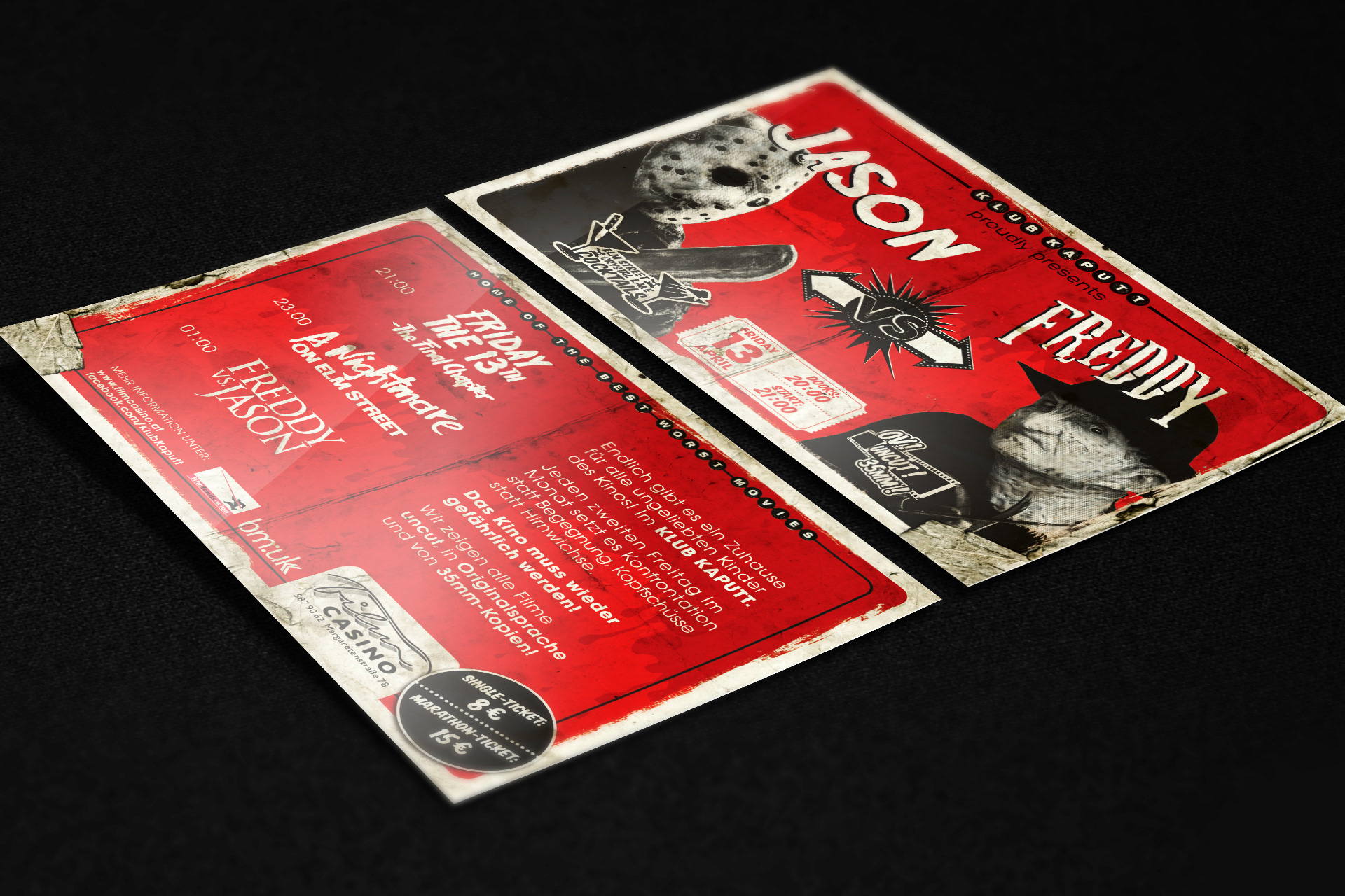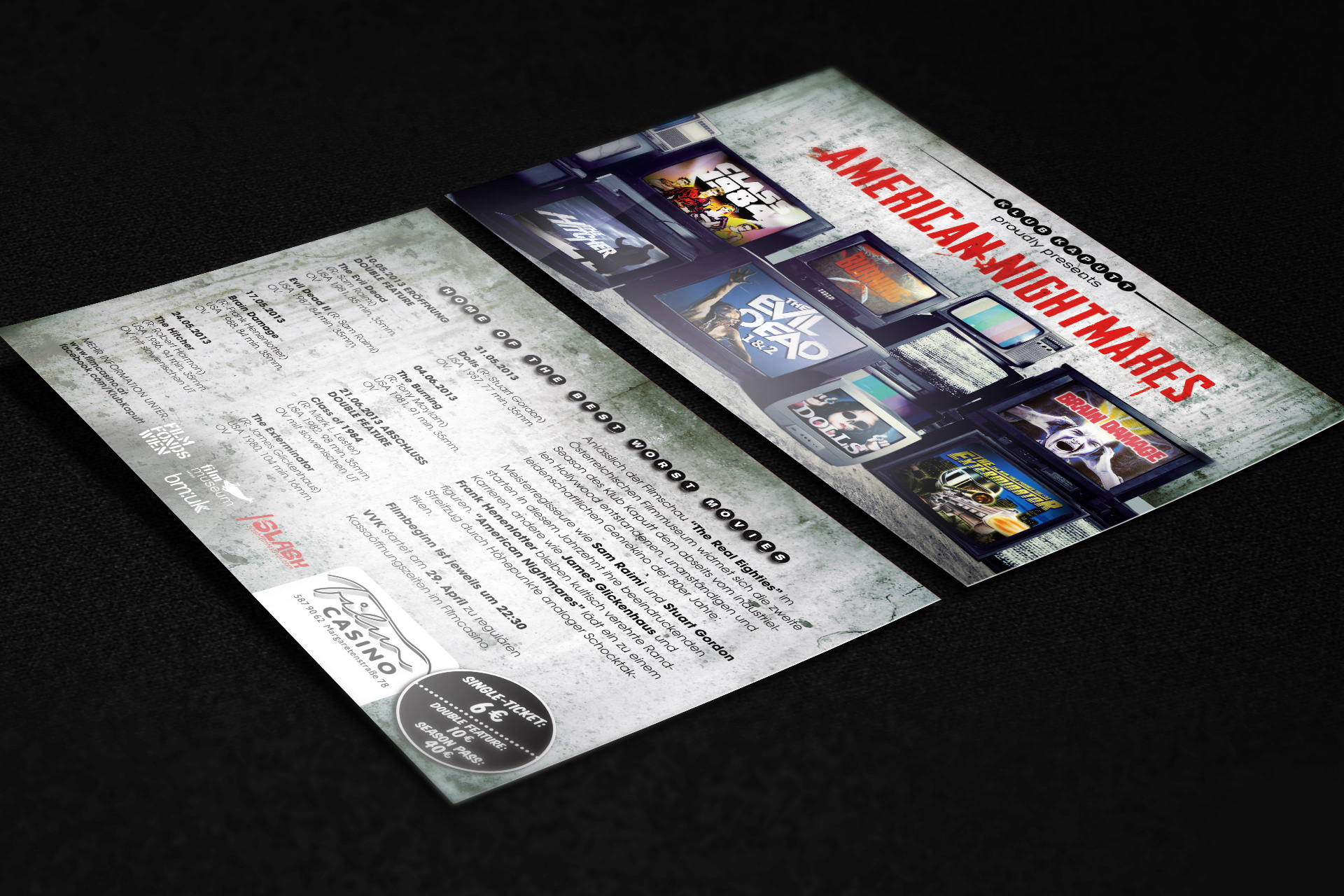 Viennas Klub Kaputt shows the best of the worst movies in the wonderful Film Casino. I developed the corporate dentity for them.