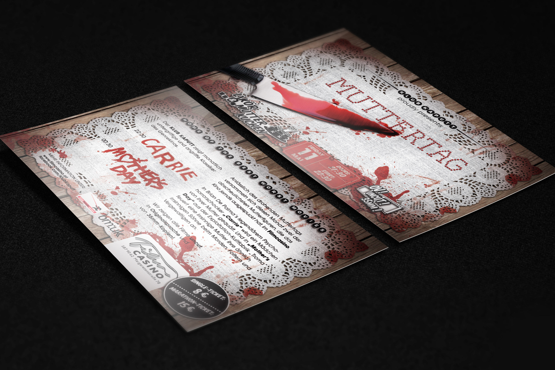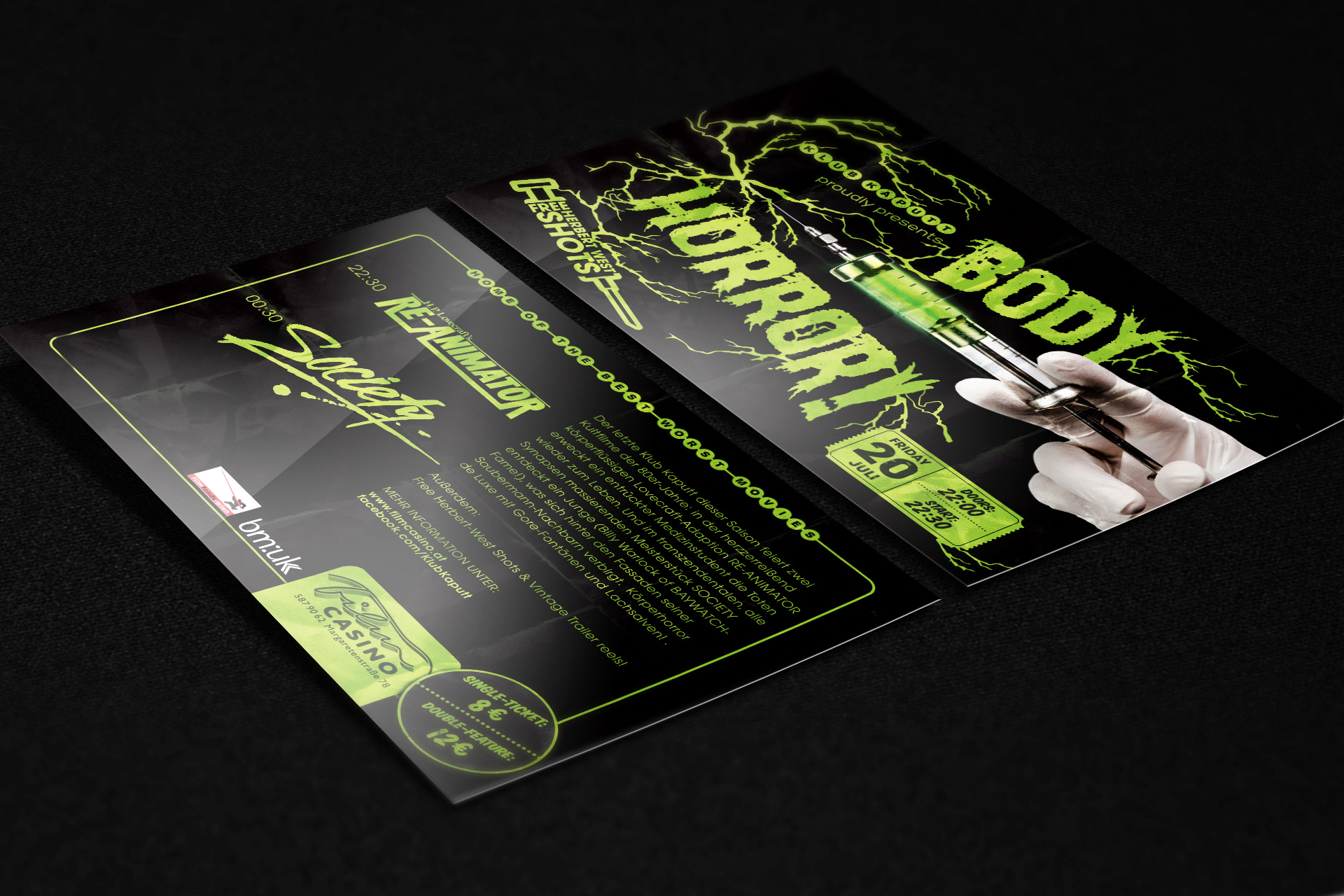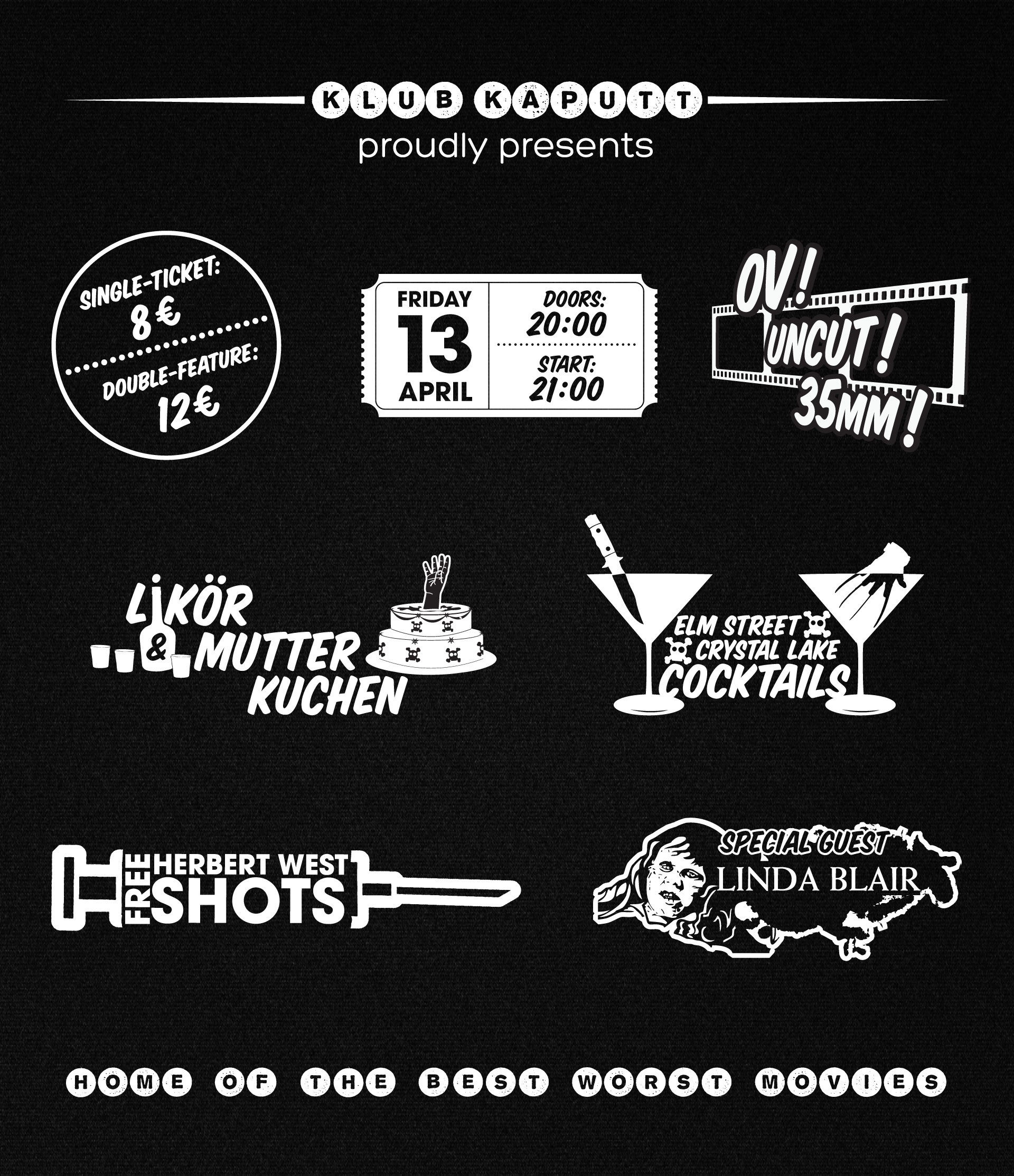 Viennas Klub Kaputt shows the best of the worst movies in the wonderful Film Casino. I developed the corporate dentity for them.